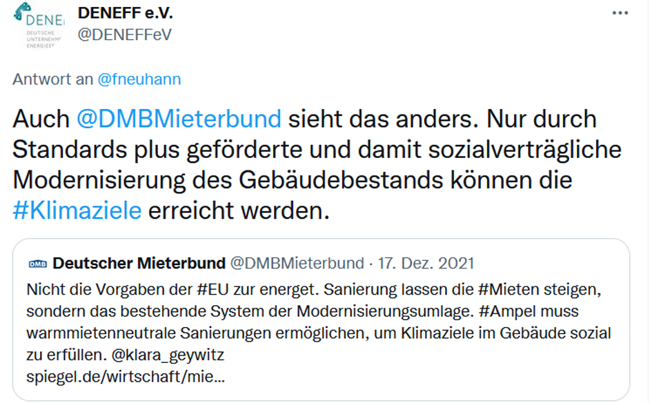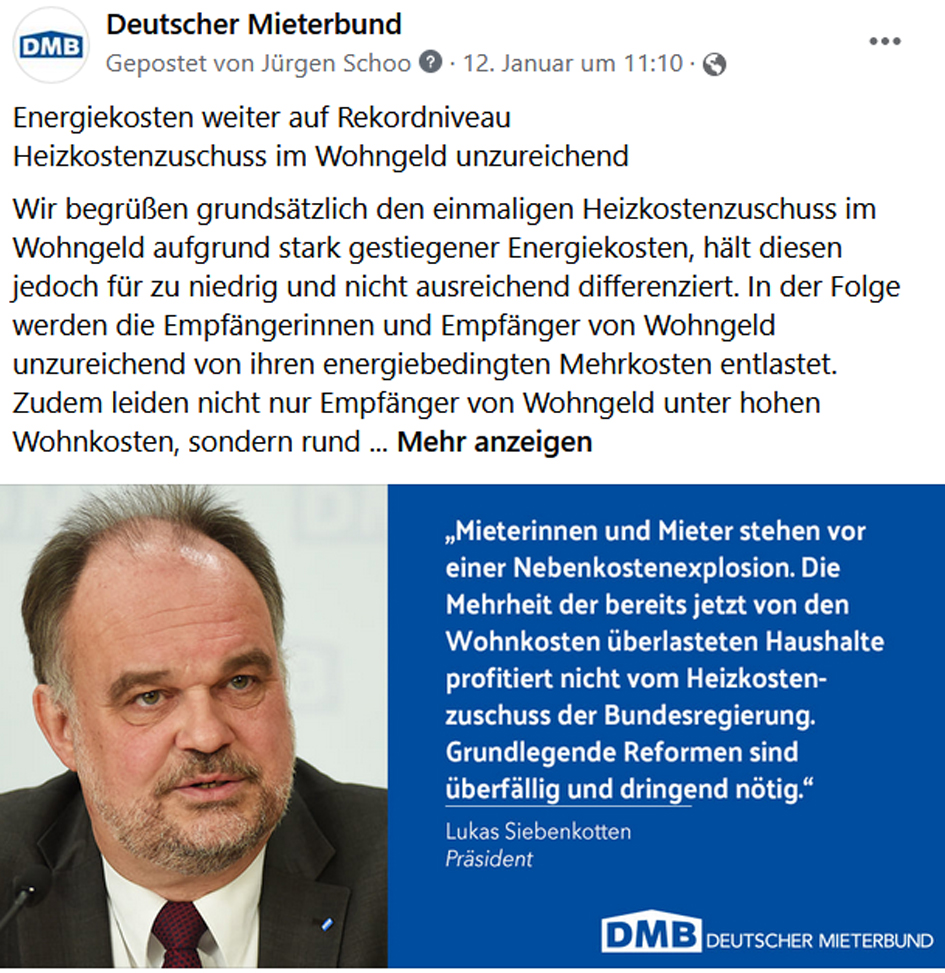 Höchstpreise für Strom, Öl- und Gas belasten auch die Mieter:innen. Deshalb spricht der Deutsche Mieterbund sich regelmäßig für die notwendige energetische Modernisierung im Gebäudebestand aus. Dabei sollten Sanierungskosten aber nicht länger über die Modernisierungsumlage „abgewälzt“ werden dürfen. Es gilt, eine warmmietenneutrale Modernisierung anzustreben, bei der Mehrkosten für die Mieter:innen durch Einsparung von Energiekosten ausgeglichen werden. Dabei ist auch die Einführung ökologischer Mietspiegel zu prüfen, wie wir sie mit vielen Partnerorganisationen im Strategiepapier „Ressourcenwende“ angeregt haben.
