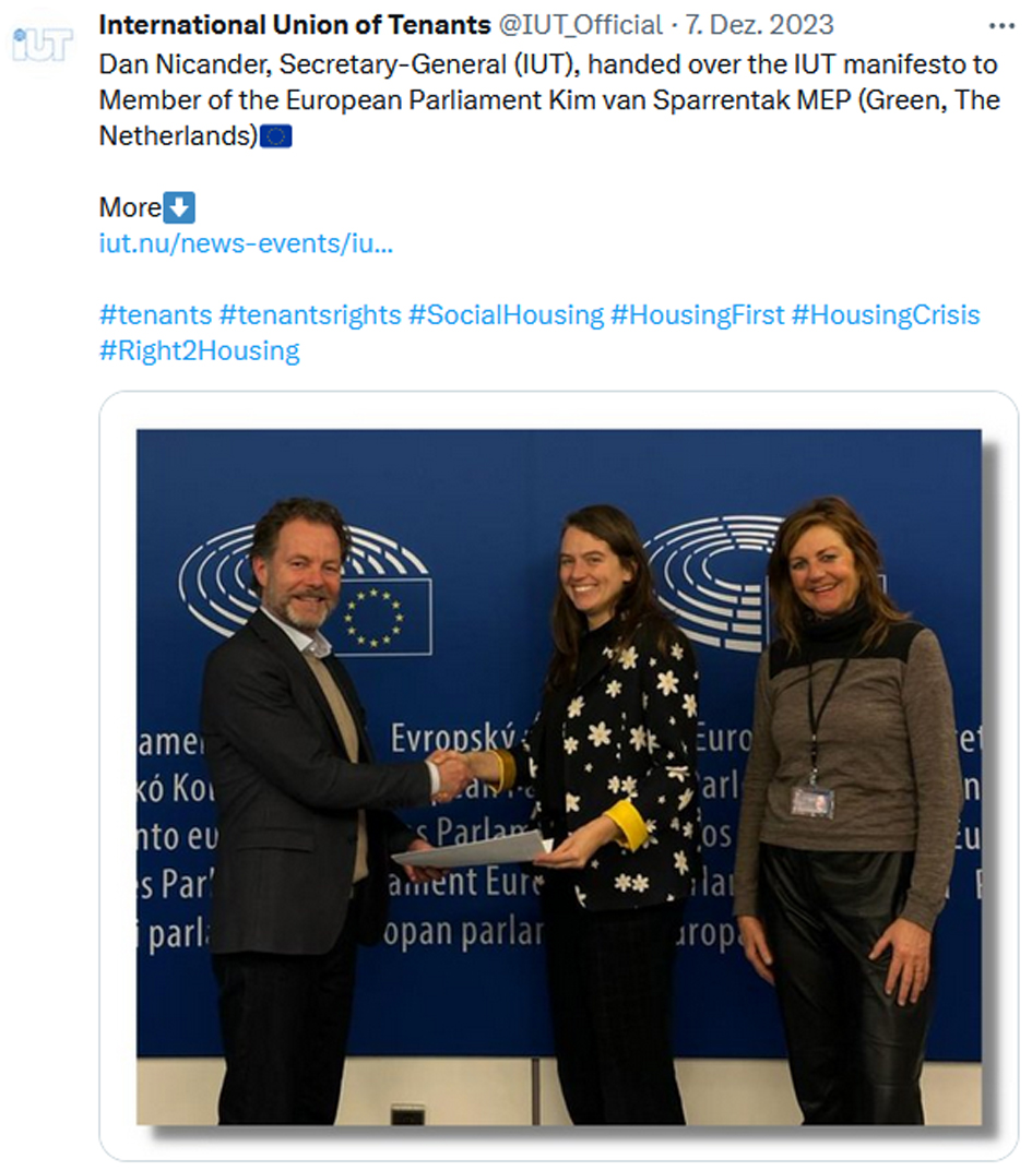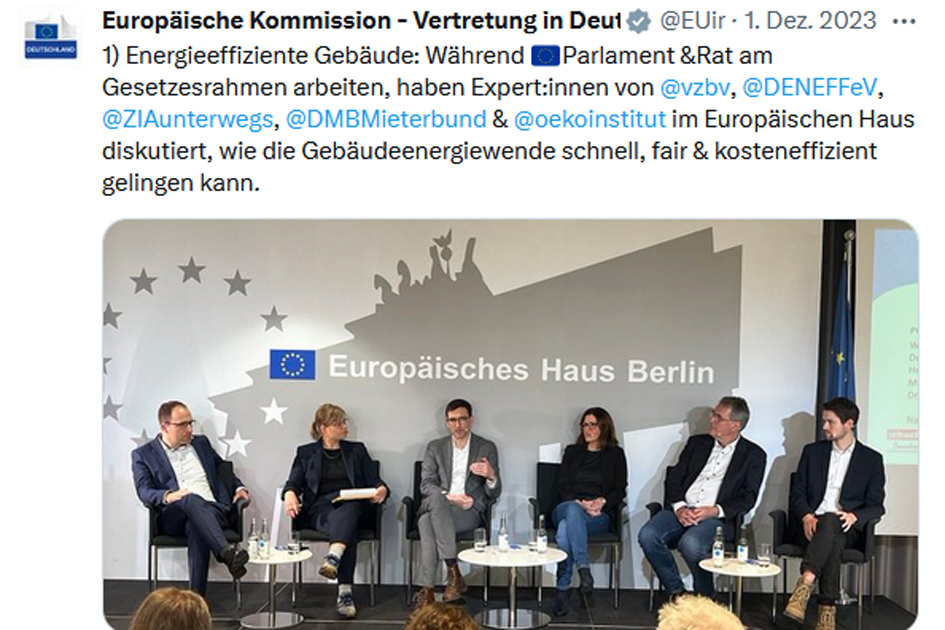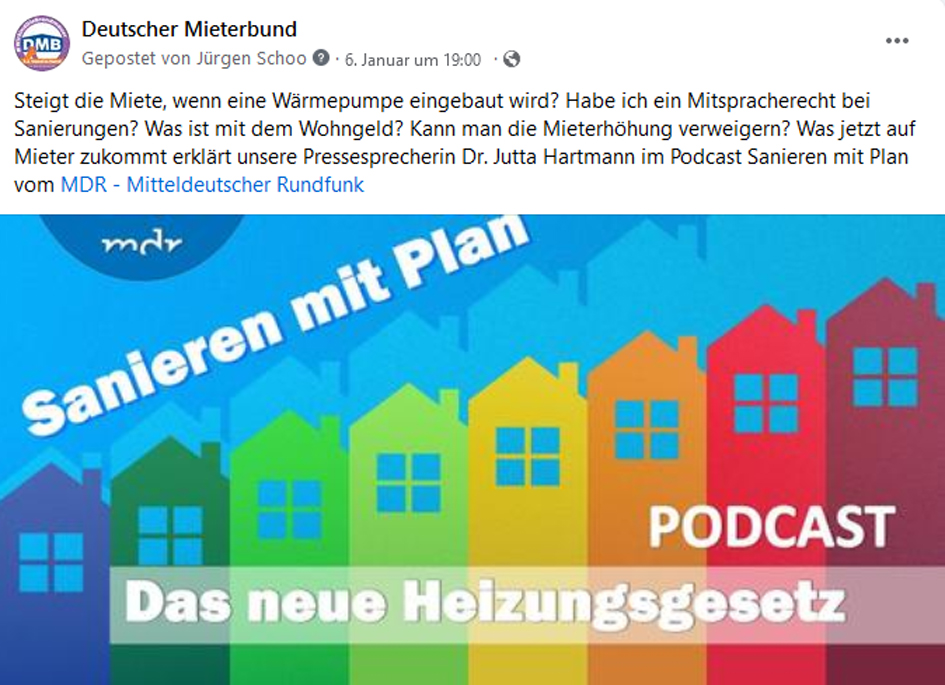 Dass auch steigende Energiepreise die Kosten fürs Wohnen in die Höhe treiben, betrifft Mieter:innen in ganz Europa. Die International Union of Tenants (IUT) hat eine Prioritätenliste zur Europawahl zusammengestellt. An einer Diskussion rund um energieeffiziente Gebäude im Europäischen Haus beteiligte sich Dr. Melanie Weber-Moritz. Im Podcast „Sanieren mit Plan“ erklärt DMB-Pressesprecherin Dr. Jutta Hartmann, was auf Mieter:innen zukommen kann.