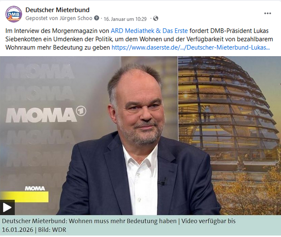 Aktuelle Informationen zu wohnungspolitischen Themen finden Sie bei Facebook und Twitter und ganz neu auch bei Bluesky und Instagram.
