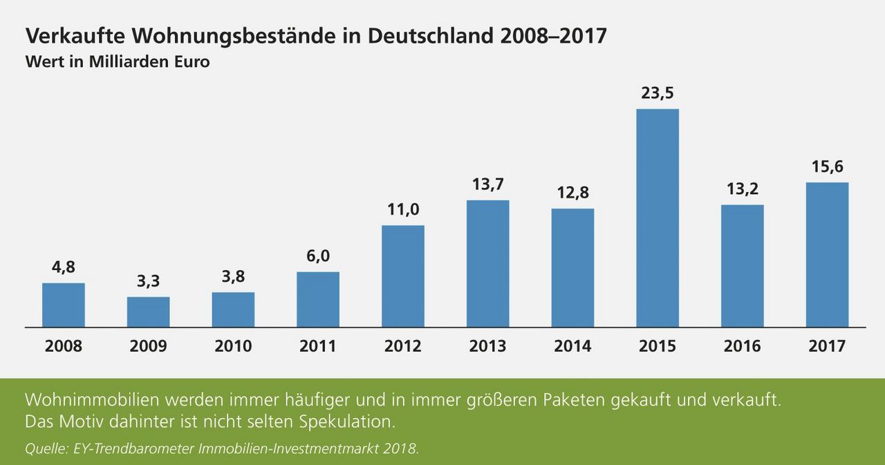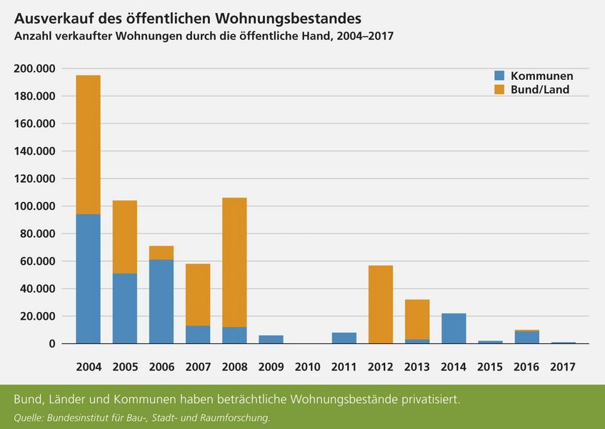 Besonders viele Wohnungen wurden zwischen 2004 und 2008 privatisiert; allein 2004 waren es bundesweit fast 200.000. Sie gehören nun meist Immobilienkonzernen, die mit Spekulationen und Luxusmodernisierungen ihren Unternehmensgewinn steigern.