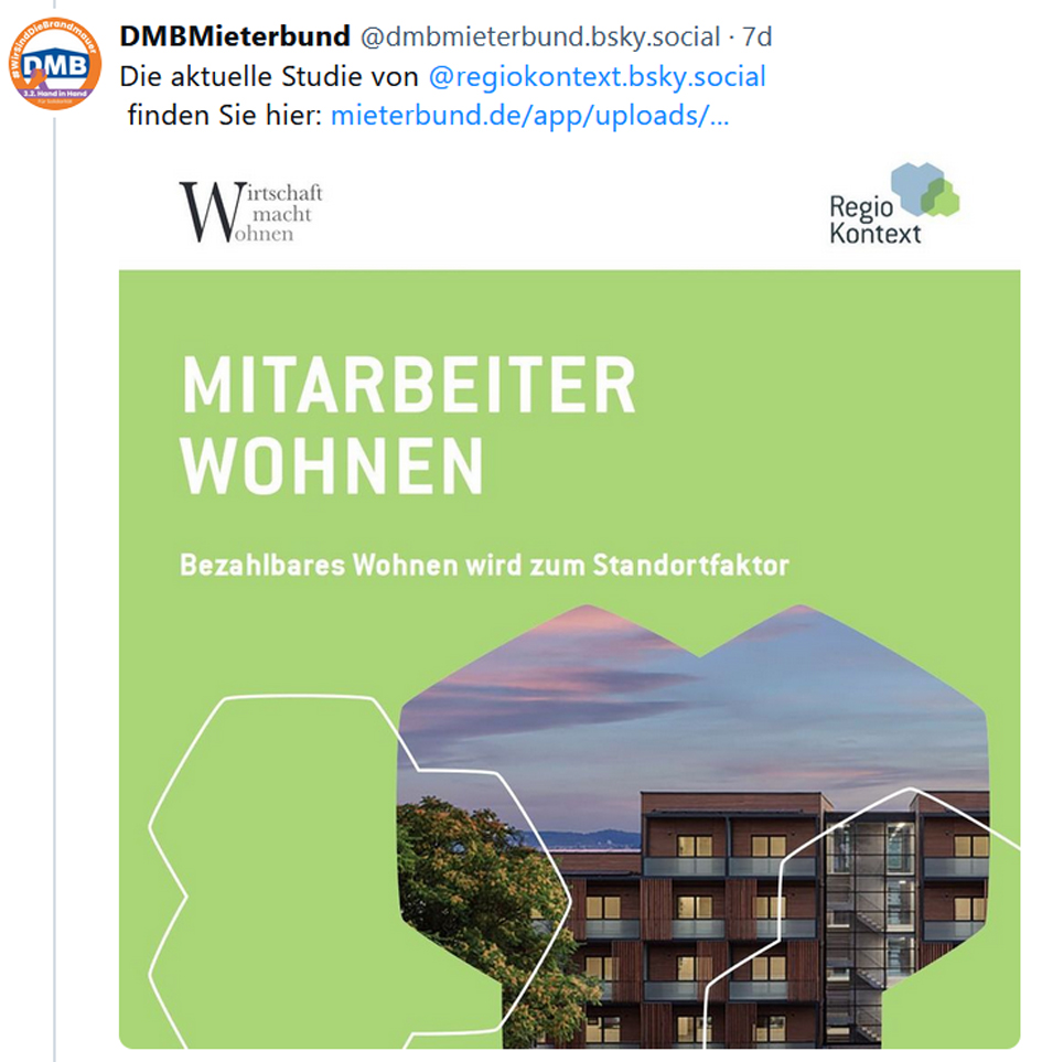 Solidarität und Respekt sind auch Voraussetzung dafür, dass sich Menschen an ihrem Wohnort wohlfühlen. Laut einer Studie von PwC Deutschland sorgt die angespannte Lage im Wohnungssektor durchgehend für Frust. Mit weitreichenden Auswirkungen auf den Arbeitsmarkt, weil es immer schwieriger wird, Fachkräfte zu finden und zu halten. Wir brauchen eine echte Renaissance des Werkswohnungsbaus, sagte daher DMB-Präsident Lukas Siebenkotten bei der Vorstellung der Studie „Bezahlbares Wohnen wird zum Standortfaktor“.