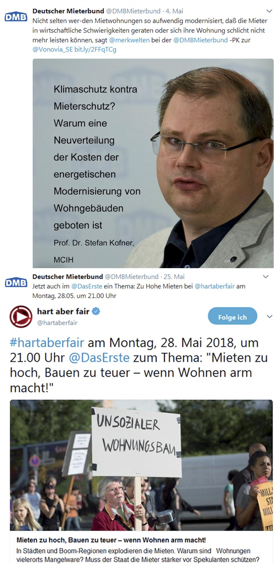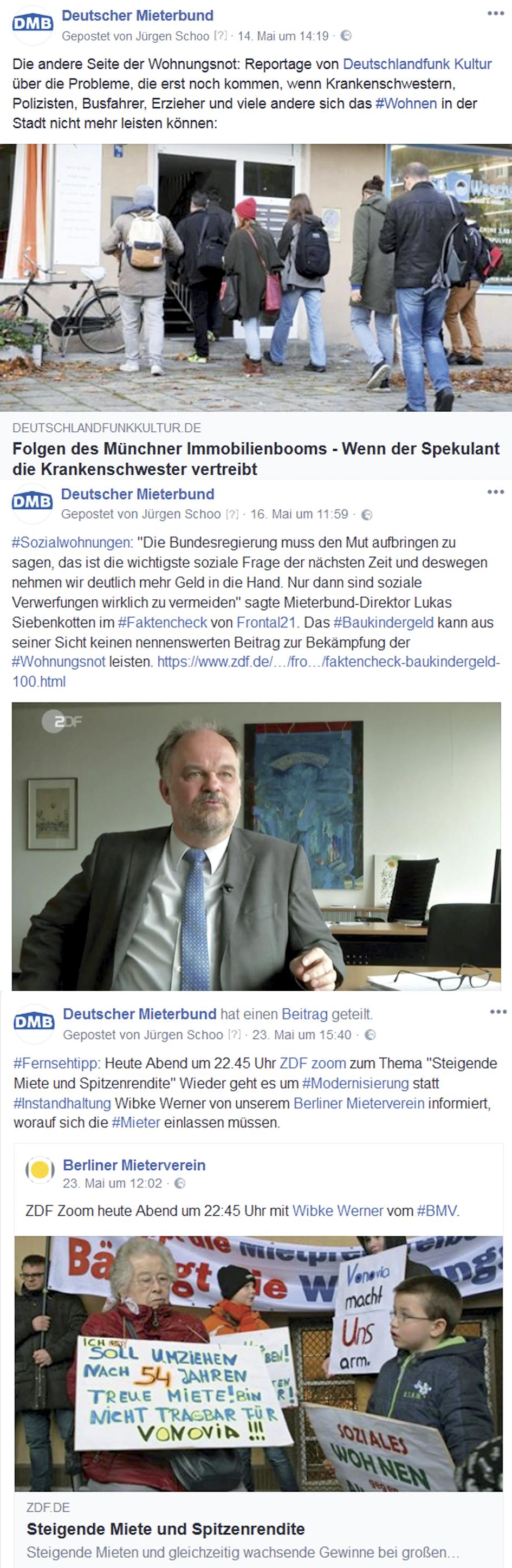 Die steigenden Mieten führen dazu, dass sich viele Menschen ihre Wohnung und oft auch ihre Stadt nicht mehr leisten können. Mieterbund-Direktor Lukas Siebenkotten hält das Thema Wohnen für die wichtigste soziale Frage der nächsten Zeit. Die Bundesregierung müsse sich deshalb mit ausreichenden finanziellen Mitteln an der Schaffung bezahlbaren Wohnraums beteiligen, fordert er. Auch eine Recherche des Deutschen Mieterbundes, wie sehr Vonovia das Thema Modernisierung nutzt, um Rendite auf Kosten der Mieter zu machen, führt zu zahlreichen Medienbeiträgen. Eine Auswahl haben wir hier zusammengestellt. Immer aktuell informieren wir Sie unter: https://www.facebook.com/DMBMieterbund/ und https://twitter.com/DMBMieterbund