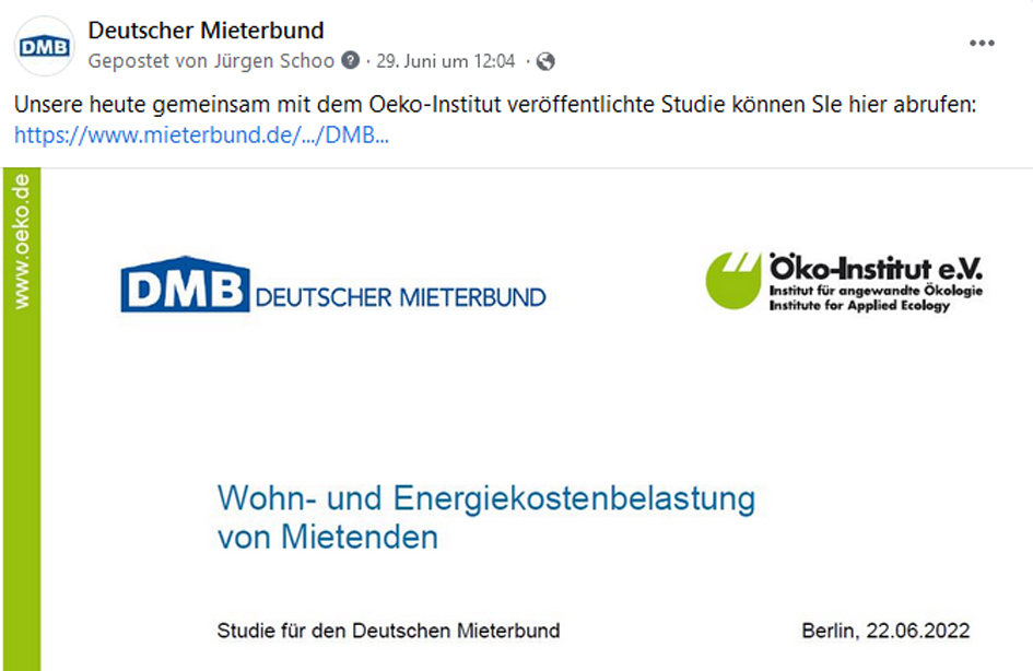 Laut einer Studie, die das Öko-Institut für den Deutschen Mieterbund erstellt hat, ist die Wohn- und Energiekostenbelastung für Mieter:innen weiter angestiegen. Bei der Änderung des Gebäudeenergiegesetzes warnt der Deutsche Mieterbund, die erreichten Kostenbegrenzungen dürften bei der Diskussion des Gesetzes im Bundestag nach der Sommerpause nicht in Frage gestellt werden.