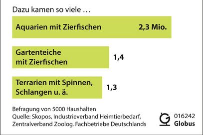 Die Liebe der Deutschen zu Haustieren ist ungebrochen: Im vergangenen Jahr lebten bundesweit rund 34 Millionen Tiere in Privathaushalten. Die beliebtesten Tierarten sind Katzen, Hunde, Mäuse, Kaninchen, Vögel und andere Kleintiere, hinzu kommen Aquarientiere wie Fische sowie Terrarienbewohner wie Geckos, Schlangen, Schildkröten oder Insekten und Spinnen.