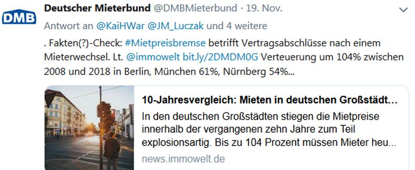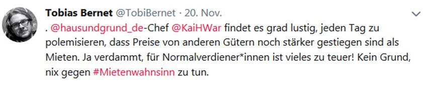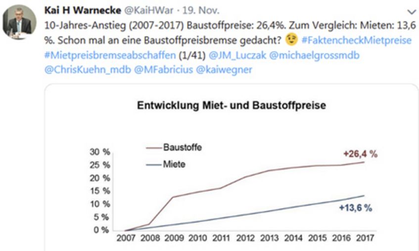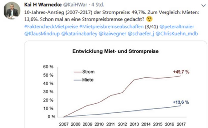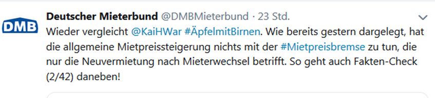 Um steigende Mieten, insbesondere auch unter dem Aspekt Gerechtigkeit, ging es in den letzten Wochen auf den Social-Media-Seiten des Deutschen Mieterbundes. Wie man diese Themen besonders unsachlich diskutiert, beweist gerade eindrücklich Haus&Grund-Präsident Dr. Kai H. Warnecke mit seinen #ÄpfelmitBirnen-Vergleichen. Eine kleine Auswahl der Beiträge haben wir hier zusammengestellt. Weitere Diskussionsbeiträge und Informationen finden Sie unter