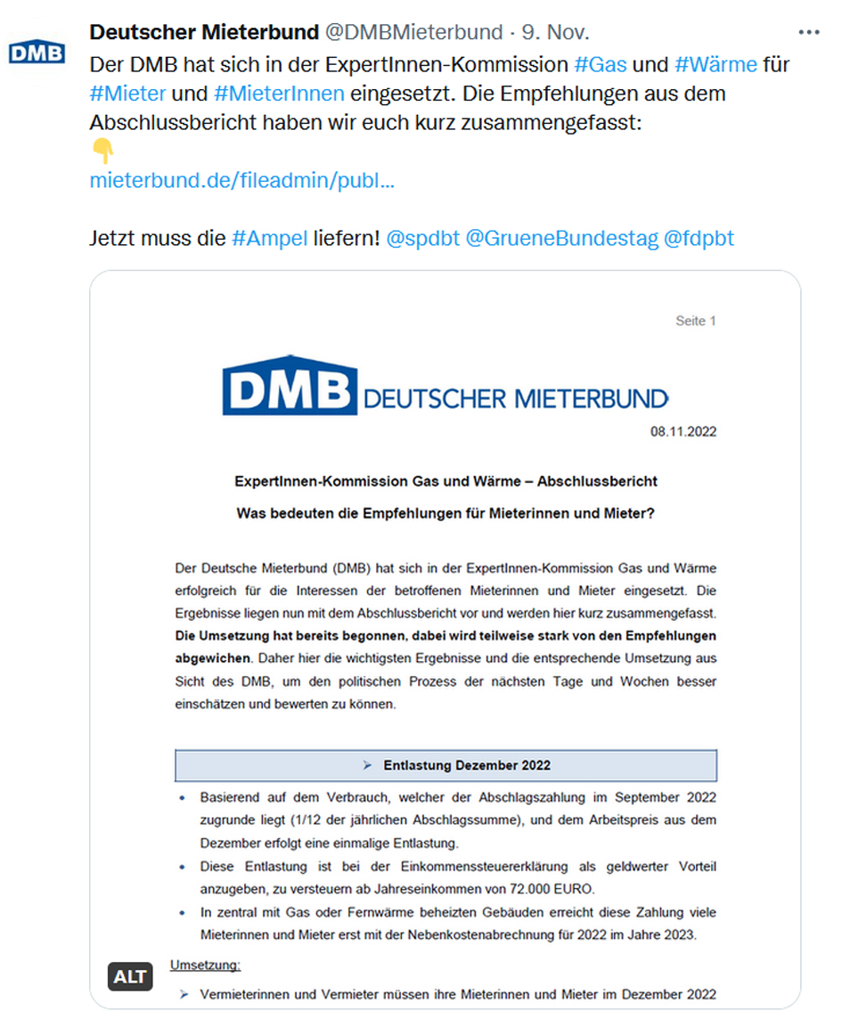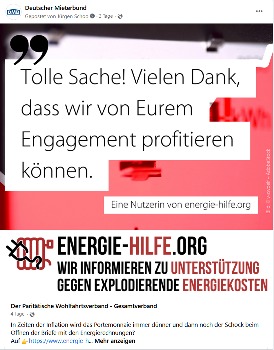 Darüber hinaus empfahl er Menschen, bei denen es immer wieder finanziell knapp wird, zu prüfen oder überprüfen zu lassen, ob sie einen Anspruch auf Wohngeld haben. Durch die Wohngeldreform ab Januar 2023 seien rund zwei Millionen Haushalte anspruchsberechtigt. Gemeinsam mit zahlreichen sozialen Organisationen unterstützt der DMB die Aktion Energie-Hilfe (www.energie-hilfe.org) vom Paritätischen Wohlfahrtsverband und Tacheles e.V.