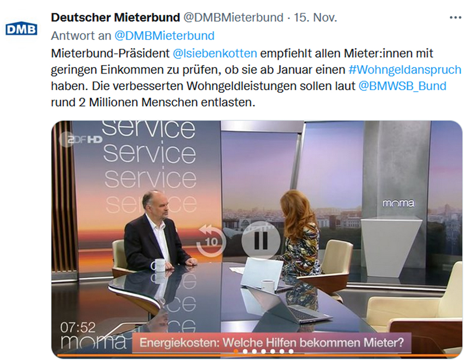 Der Deutsche Mieterbund hat sich in der Expert:innenkommission Gas und Wärme erfolgreich für die Interessen der betroffenen Mieter:innen eingesetzt. Im Morgenmagazin des ZDF erklärte Mieterbund-Präsident Lukas Siebenkotten, mit welchen Hilfen sie rechnen können.