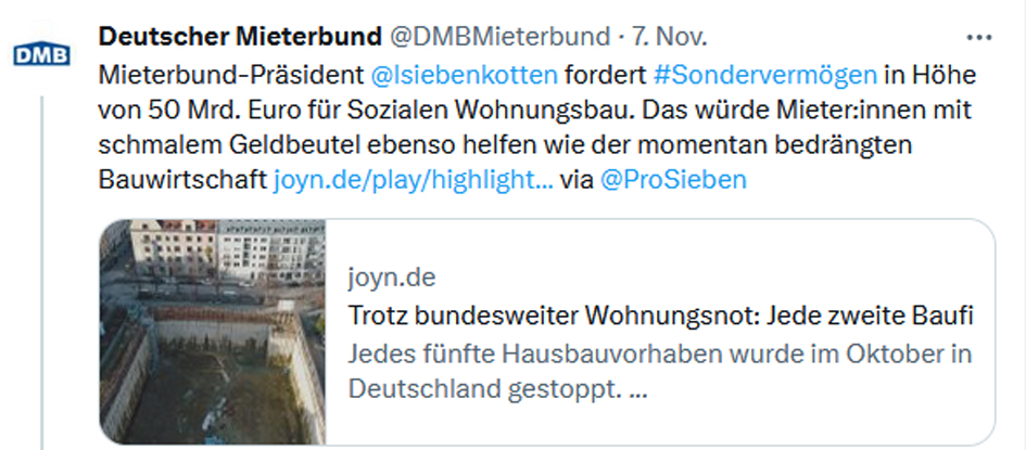 Aktuelle Informationen zu wohnungspolitischen Themen finden Sie jetzt neu auch bei Bluesky und wie immer bei Facebook und Twitter.