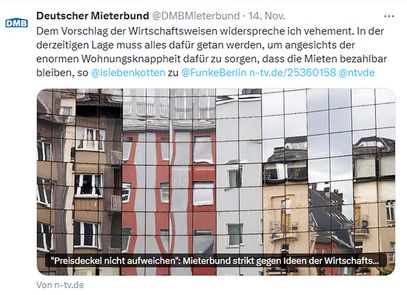 Aus Sicht der sogenannten Wirtschaftsweisen wird eine effizientere Nutzung des Wohnraumes durch den hohen Abstand zwischen Bestands- und Neumieten verhindert. Deshalb sollte eine restriktive Mietenregulierung mit abgesenkten Kappungsgrenzen und Mietpreisbremse nur temporär gelten und zwingend mit wirksamen Maßnahmen zur Schaffung von Wohnraum einhergehen, fordern die Sachverständigen. Dem Vorschlag widersprach DMB-Präsident Lukas Siebenkotten vehement: Es müsse alles getan werden, um die Mieten bezahlbar zu halten.